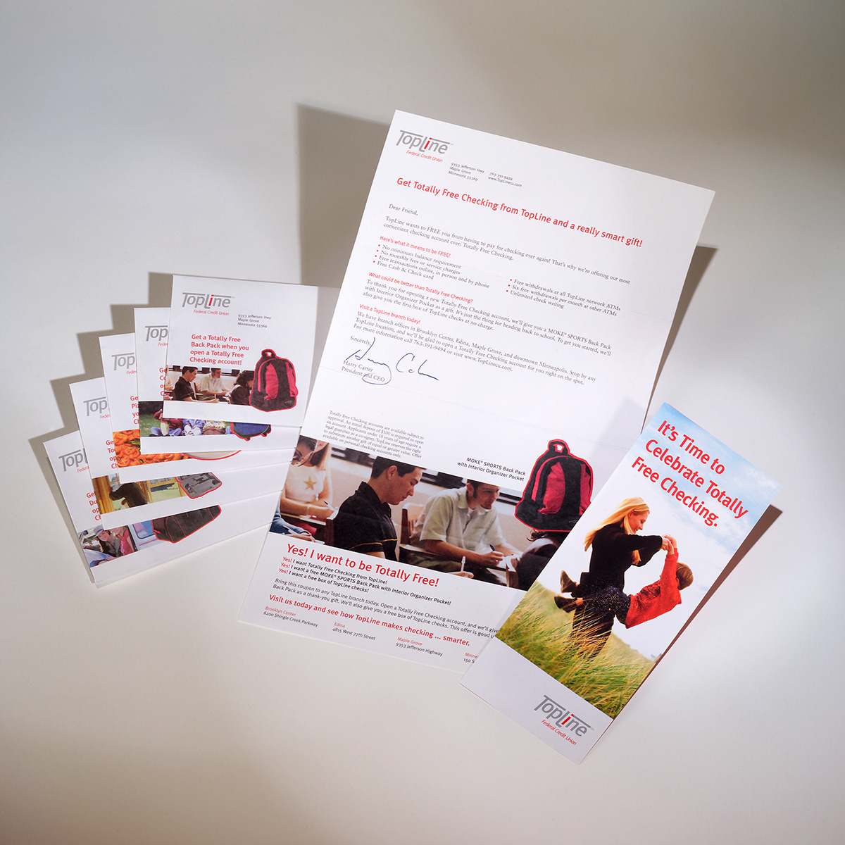 Brochures, direct mail and in-store graphics for Topline FCU.